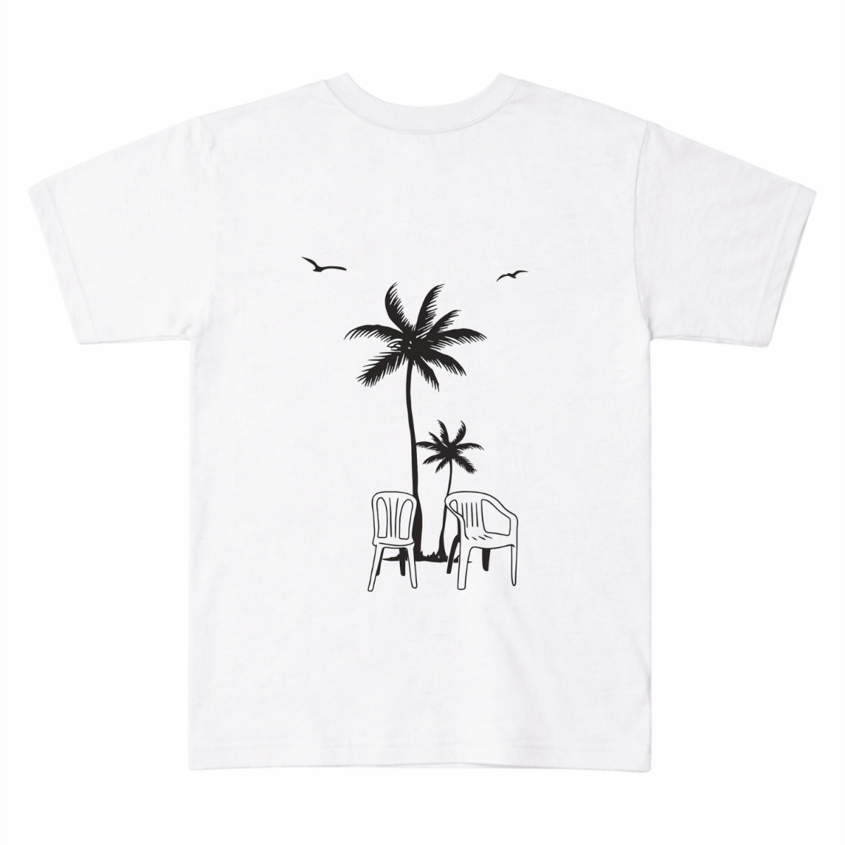Experience the summer vibe with this two-sided Bad Bunny tee, featuring a watercolor frog front and minimalist palm tree silhouettes on the back. Shop now!