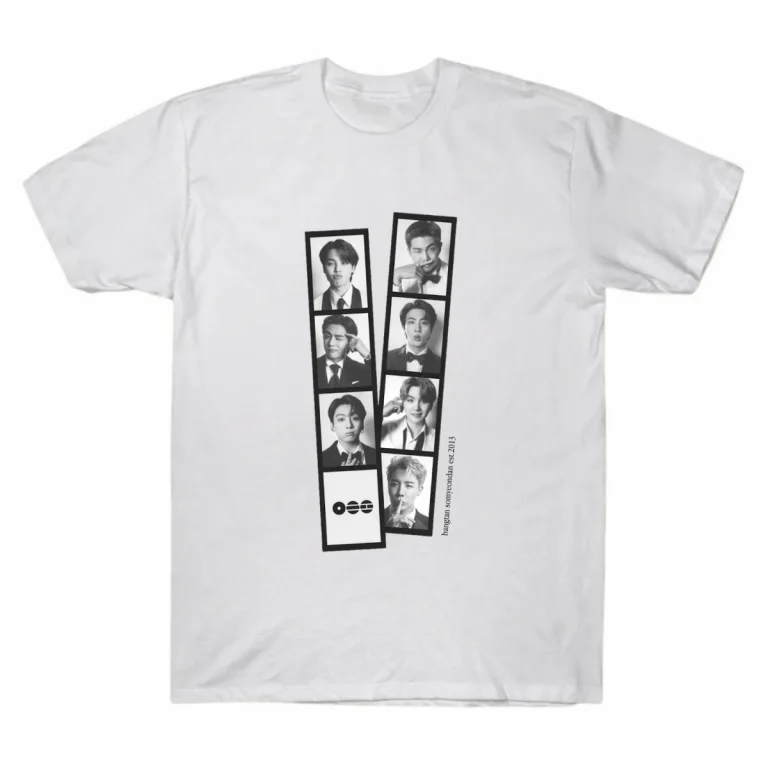 Capture the memory of the legends! This iconic BTS “Arirang” Photobooth Strip tee features all 7 members in a vintage monochrome design. Shop now!