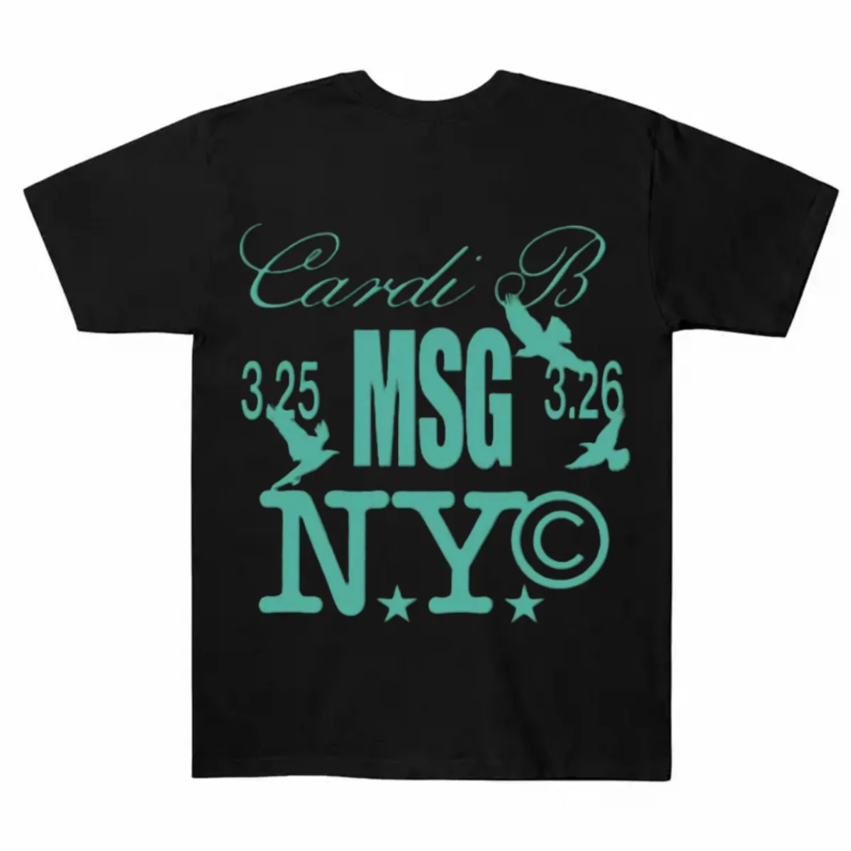 Join the movement with the Cardi B MSG Liberty Tee. Double-sided teal graphics, premium black cotton, and 100% star energy. Shop this iconic look now!