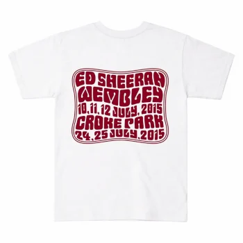 Relive the magic of 2015 with this Ed Sheeran two-sided tee, featuring a bold portrait front and Wembley & Croke Park tour dates on the back. Shop now!