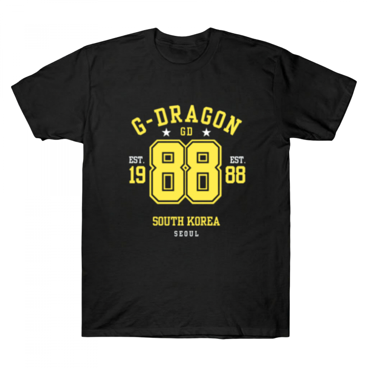 Rep the origin of a legend with the G-Dragon Seoul 1988 Varsity Tee. Bold yellow graphics, premium black cotton, and 100% star energy. Shop the vibe!