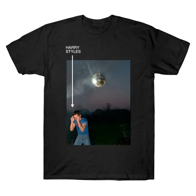 Buy the Harry Styles Arrow Shirt at Musiha. Featuring a minimalist disco ball design and premium cotton. Fast US shipping Shop this statement tee at Musiha now!