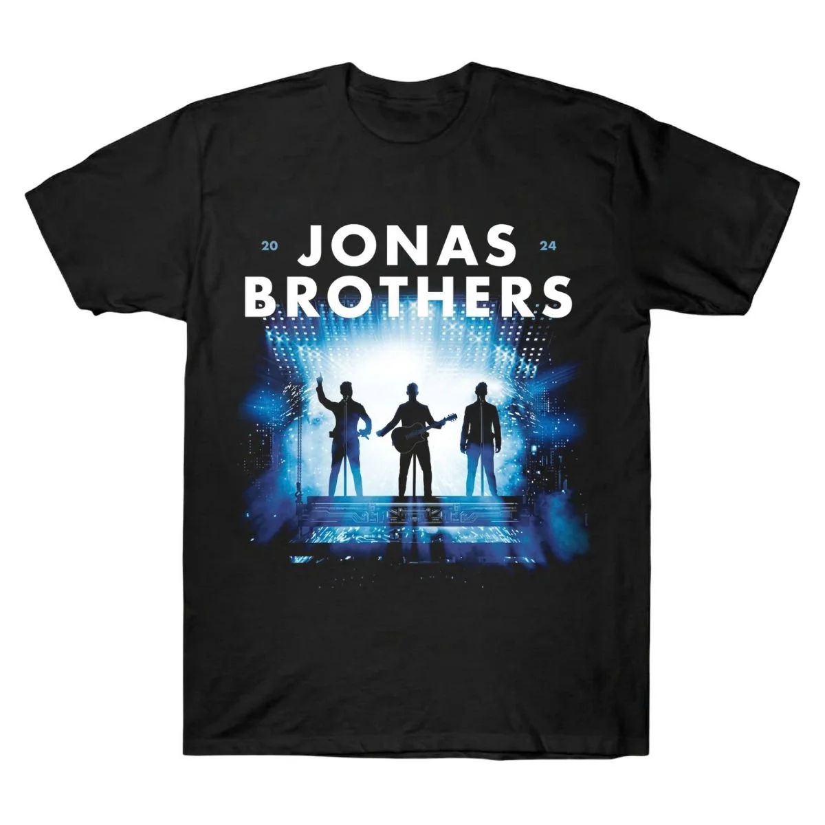 Catch the energy with the Jonas Brothers 2024 Tour Silhouette Tee. Bold blue stage graphics, premium feel, and 100% fan pride. Shop now!