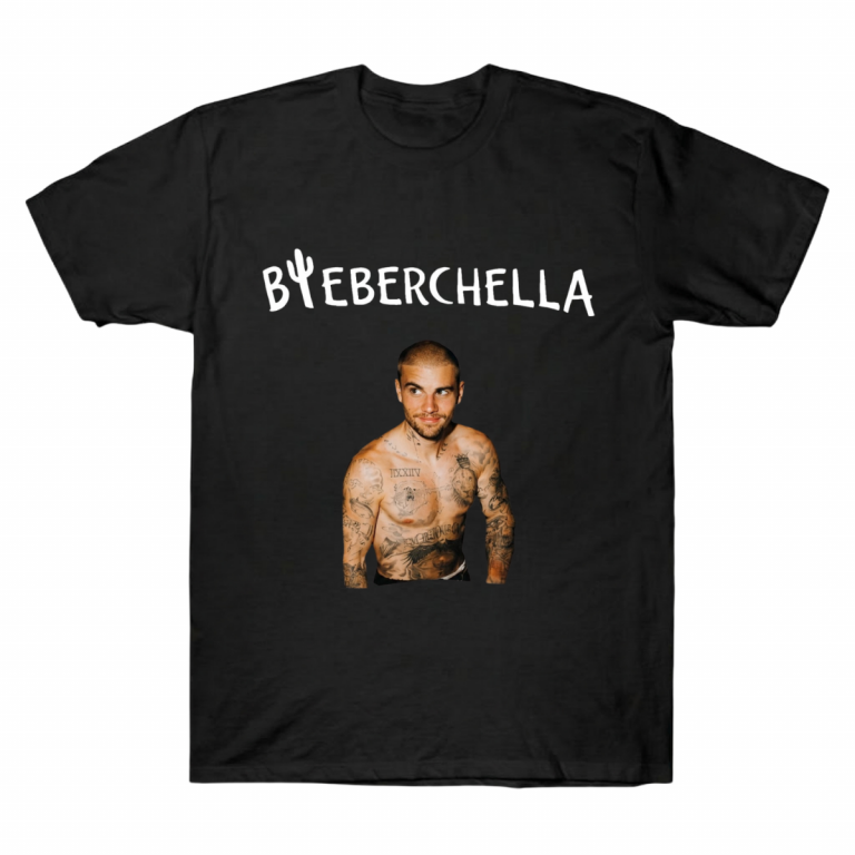 Own the festival vibe with this Justin Bieber tee, featuring a shirtless portrait and “Bieberchella” arched logo in a bold design for rockstar energy. Shop now!