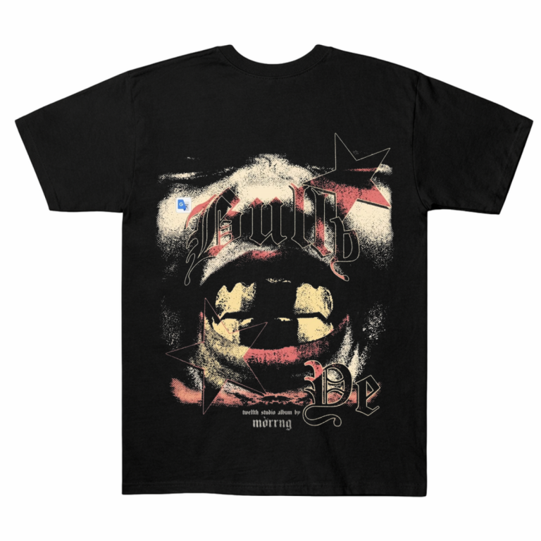 This one-sided design focuses on the peak industrial-chic energy that defines the new chapter of Kanye West. It features a high-fidelity, high-contrast graphic of a mouth and teeth, rendered in a gritty, grain-textured aesthetic. Accented by bold red halftone stars and the striking gothic “Bully” typography, it mirrors the raw and experimental journey from the “mörrng” sessions. It represents more than just merch, it’s a symbol of connection to the sonic evolution and the moments that redefined modern performance art. Whether you’re gear-shifting for a concert night or styling a sharp urban look, this portrait piece is made to feel personal to your fan journey.