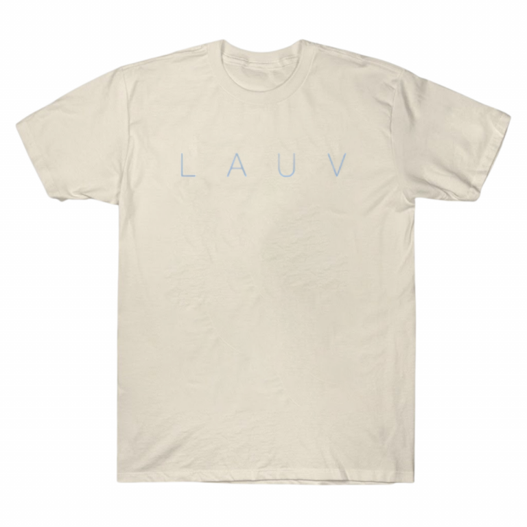 Own the indie vibe with this Lauv white tee, featuring iconic overlapping typography in soft coral tones for a clean, aesthetic look. Shop now!