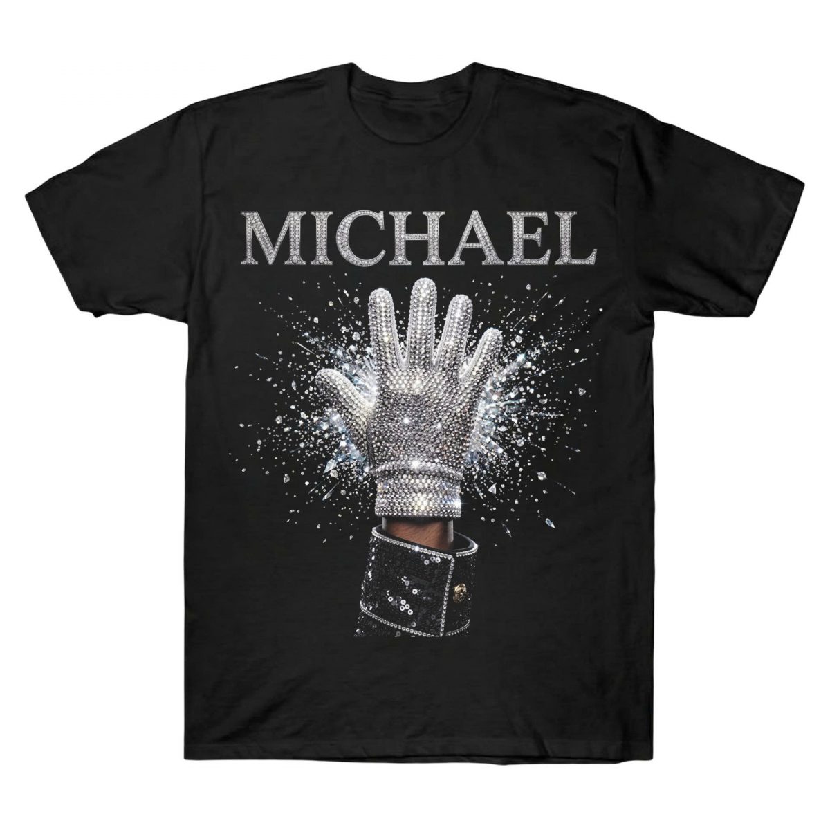 This one-sided design focuses on the most recognizable piece of music history. It features the legendary sparkling glove reaching upward, surrounded by a high-definition “shatter” burst of diamonds and light. Crowned with the bold “MICHAEL” typography in a matching silver-rhinestone effect, it mirrors the chic and sophisticated energy that the fan community adores. It represents more than just merch. It’s a symbol of connection to the music that taught the world how to dance. Whether you’re gear-shifting for a tribute night or styling a bold streetwear look, this portrait piece is made to feel personal to your MJ fan journey.