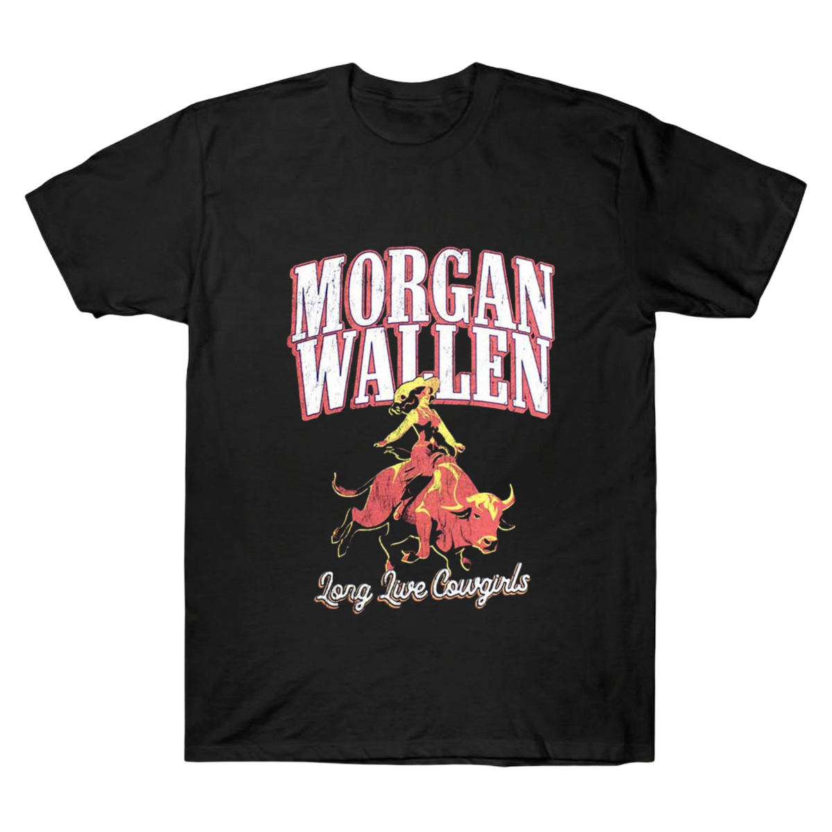 Rep the country spirit with the Morgan Wallen Long Live Cowgirls Tee. Bold western graphics, premium black cotton, and 100% star energy. Shop now!