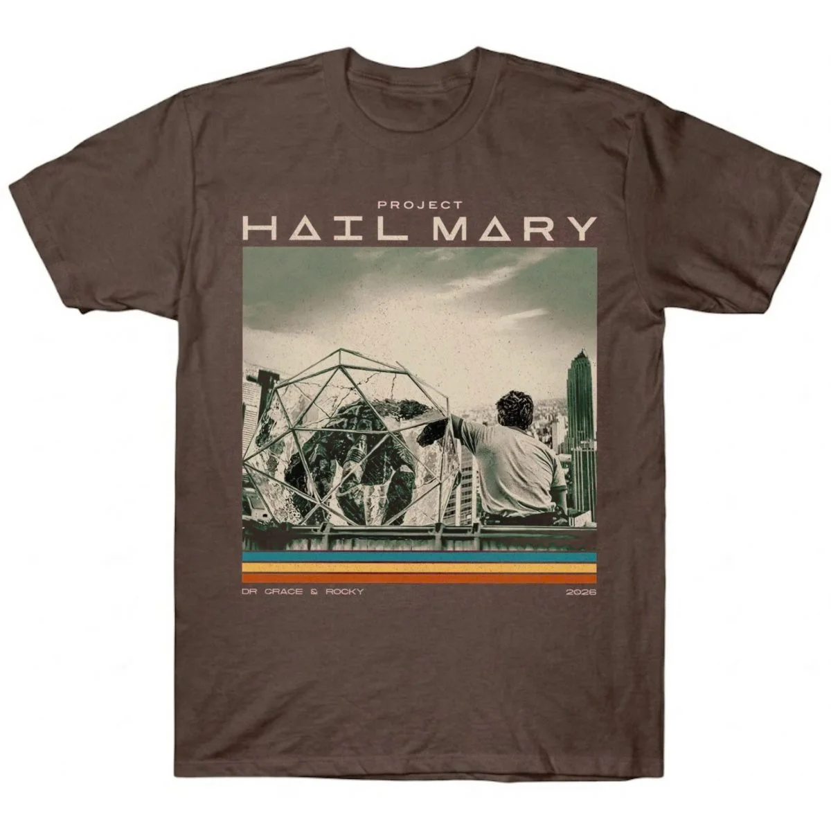 Celebrate the cosmic friendship with the Project Hail Mary Tee. Retro rooftop graphics, premium brown cotton, and 100% star energy. Shop the vibe!