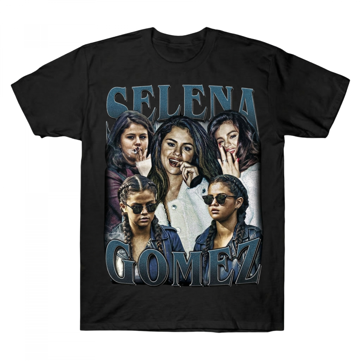 Capture the era with the Selena Gomez Vintage 90s Retro T-shirt. Bold multi-photo graphics, premium black cotton, and 100% star energy. Shop the vibe!