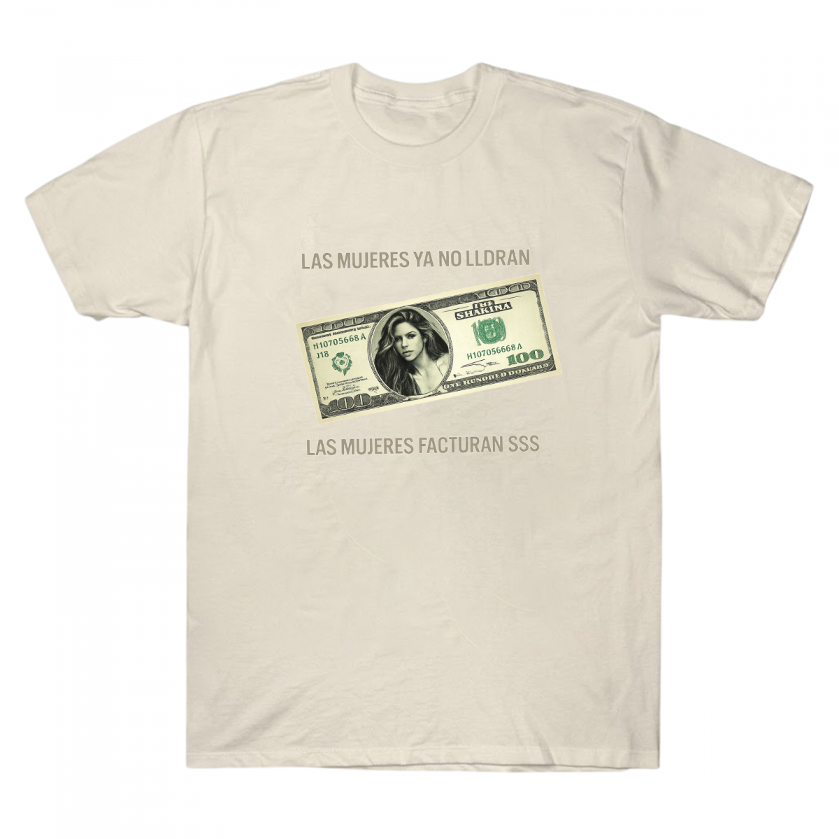 Rep the boss move with the Shakira Las Mujeres Facturan Tee. Double-sided graphics, $100 bill design, and premium cream cotton. 100% star energy. Shop now!