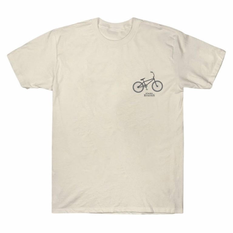 “If found, please return to Hawkins.” Own the Upside Down vibe with this Stranger Things two-sided minimalist tee, featuring a bike front and message. Shop now!