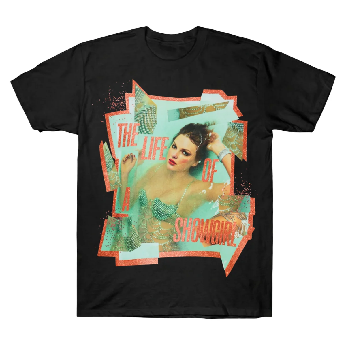 Step into the spotlight with the Taylor Swift Showgirl Iconic Aesthetic T-shirt. Jeweled collage graphics, premium black cotton, and 100% star energy. Shop now!