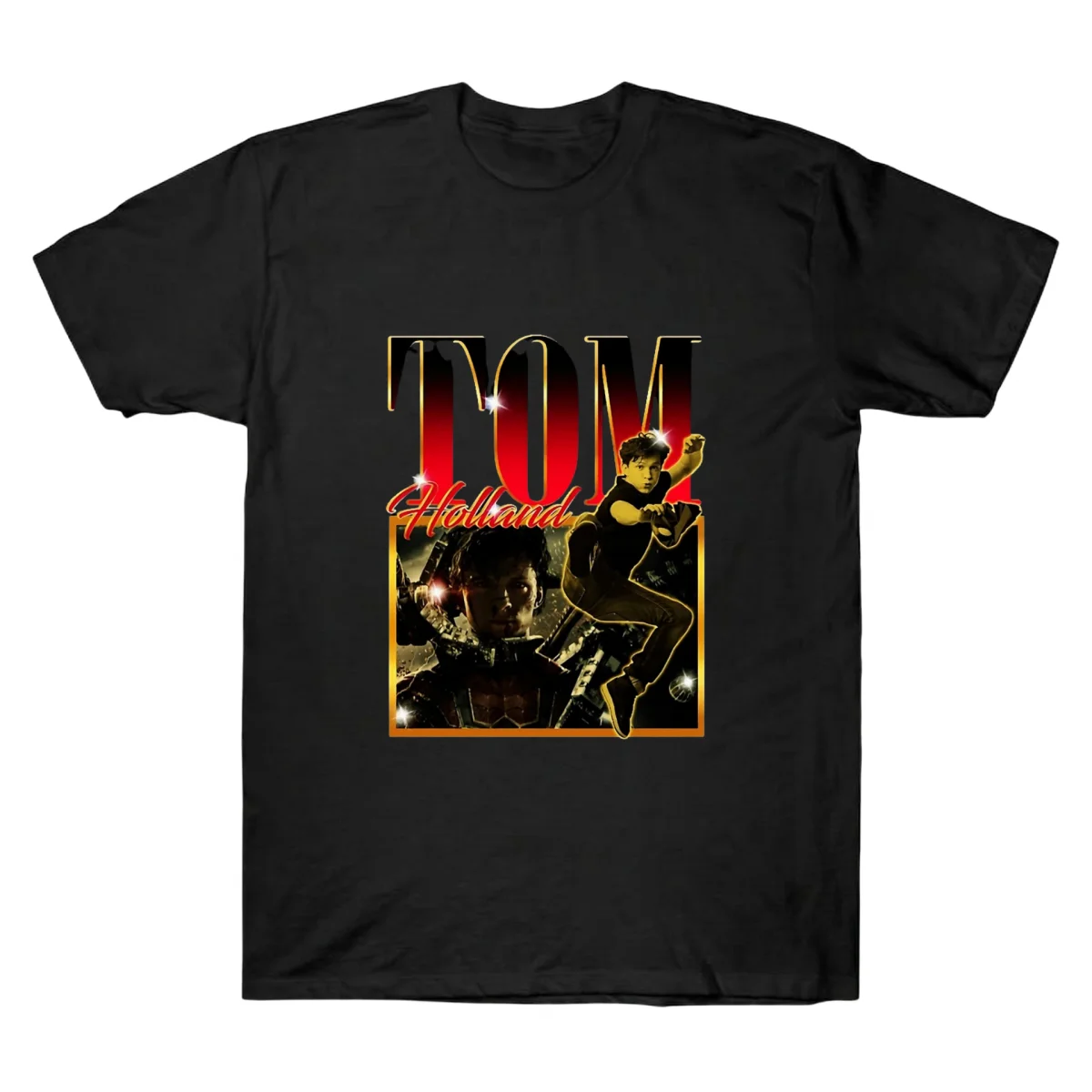 Celebrate the icon with the Tom Holland Retro Sparkle Tee. Bold red gradient, sparkling highlights, and premium soft cotton. Shop the vibe now!