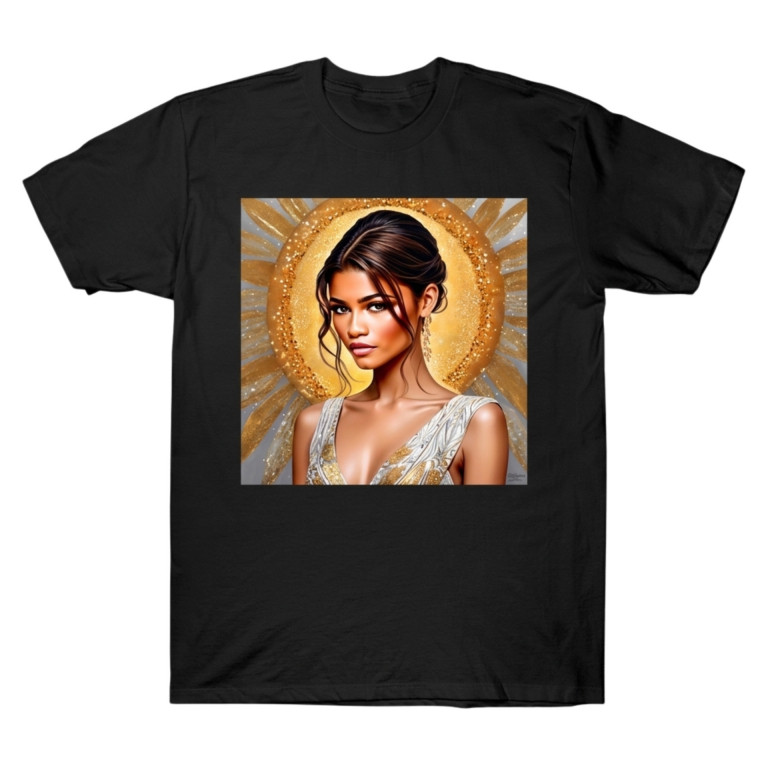 The Zendaya Goddess Shirt features an ethereal golden halo art inspired by the Met Gala. Premium cotton & MSH Print Tech. Fast US shipping. Buy at Musiha now!