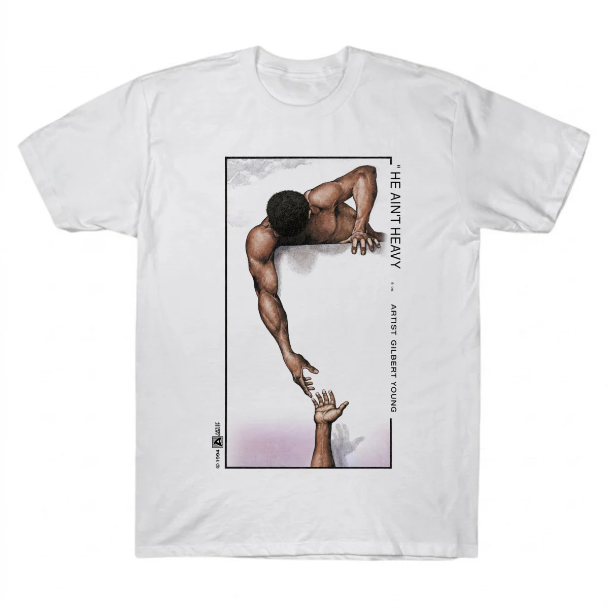 Wear the art of resilience. This iconic “He Ain’t Heavy” tee, as seen on Zendaya, captures a powerful message of unity. Shop now and wear the legacy!
